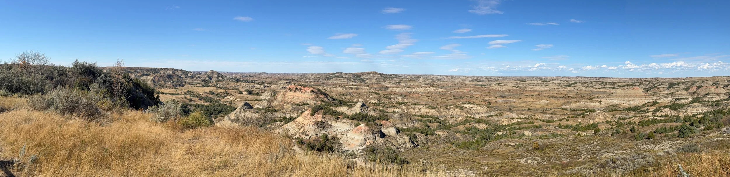 Soon, we’re spotting signs for the park, and with our National Park Pass hanging proudly from the mirror, we cruise past the closed welcome station (thanks to the federal government shutdown). The North Unit covers over 70,000 acres — created in 1935 as the Roosevelt Recreation Demonstration Area and later designated a National Park in 1978.