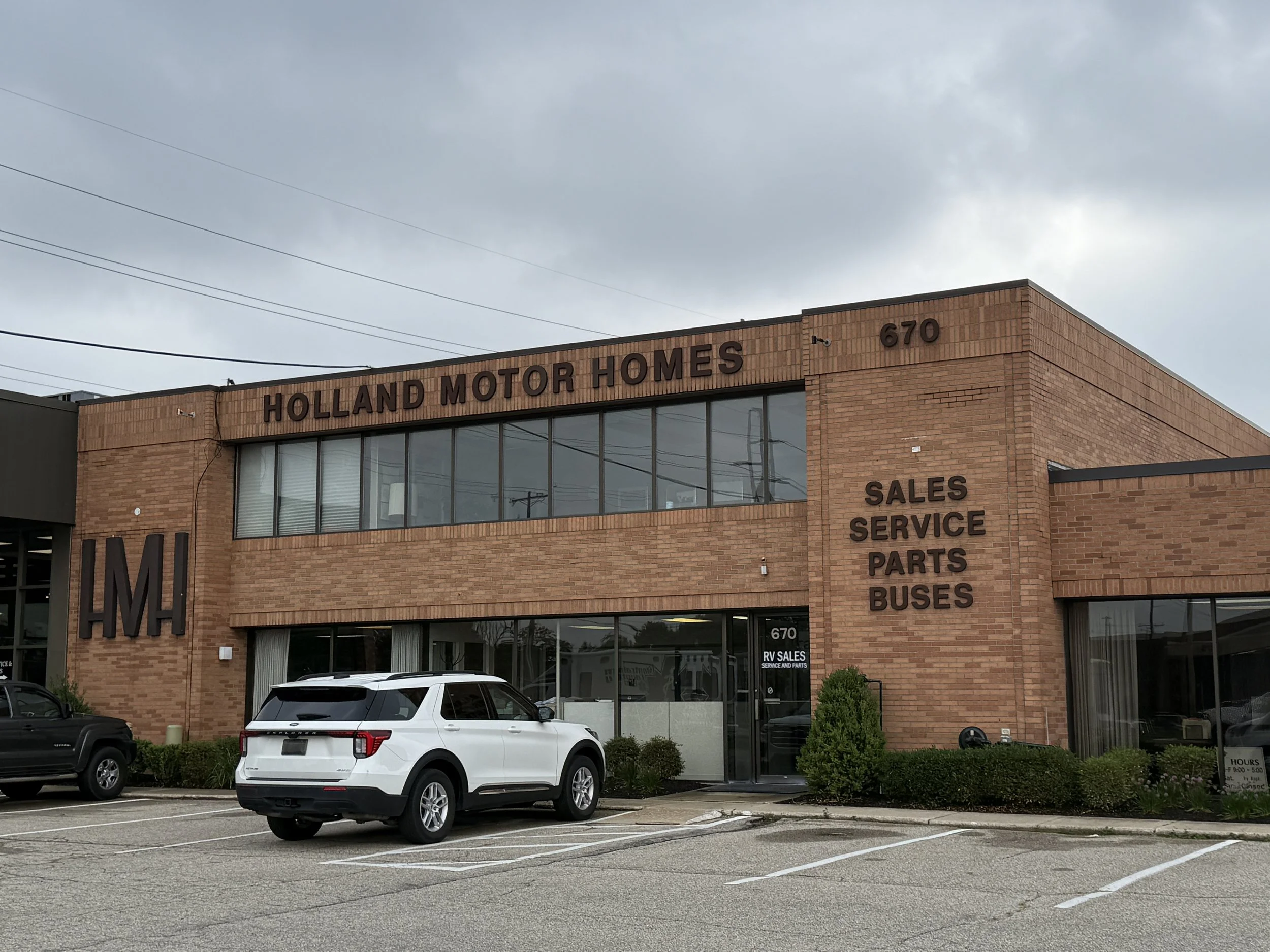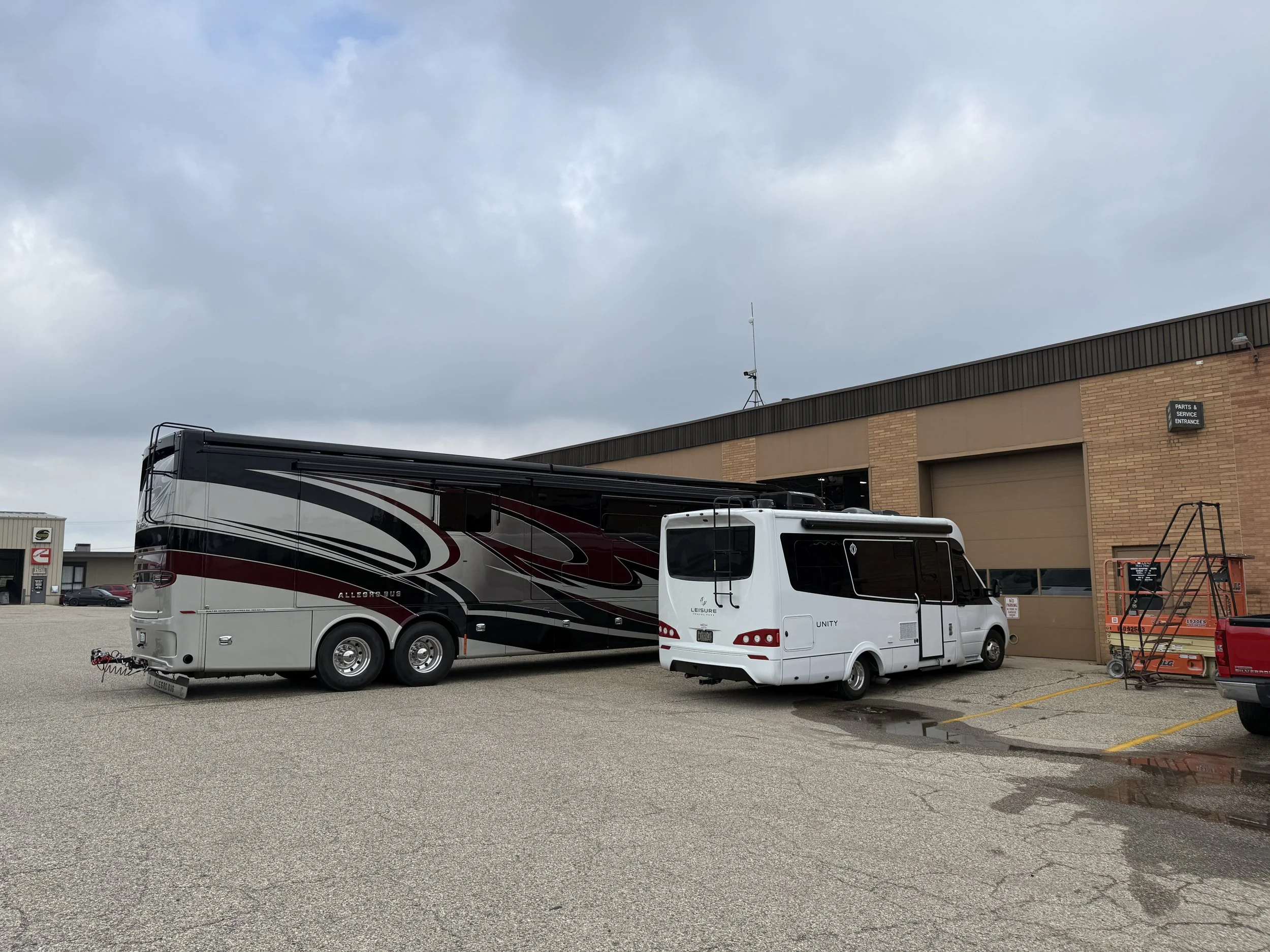 After a peaceful night’s sleep at the alpaca farm, we headed two hours west to Holland, MI, home to the Midwest dealer for Leisure Travel Vans. Jess was having some trouble with the Apple TVs, and I had a list of questions about our 400 watts of solar power, the inverter, and some of the high-tech monitoring systems. We had called ahead the day before, and Kyle in the service department told us, “Come on by in the morning and we’ll be glad to help.”